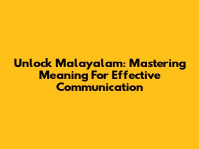 Unlock Malayalam: Mastering Meaning For Effective Communication