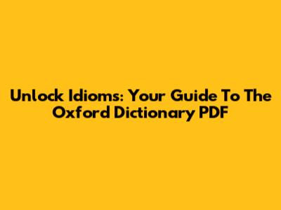 Unlock Idioms: Your Guide To The Oxford Dictionary PDF
