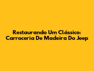 Restaurando Um Clássico: Carroceria De Madeira Do Jeep