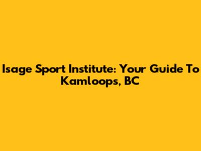 Isage Sport Institute: Your Guide To Kamloops, BC