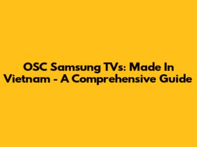 OSC Samsung TVs: Made In Vietnam - A Comprehensive Guide