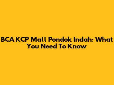 BCA KCP Mall Pondok Indah: What You Need To Know