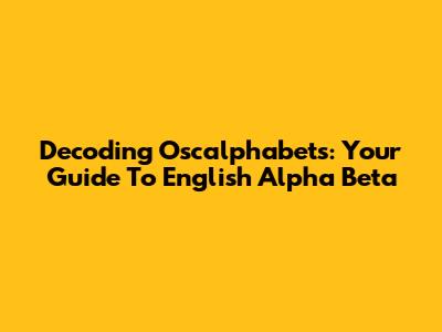 Decoding Oscalphabets: Your Guide To English Alpha Beta
