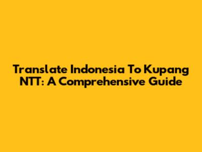 Translate Indonesia To Kupang NTT: A Comprehensive Guide