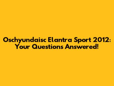 Oschyundaisc Elantra Sport 2012: Your Questions Answered!