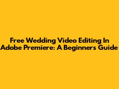 Free Wedding Video Editing In Adobe Premiere: A Beginner's Guide