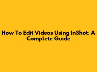 How To Edit Videos Using InShot: A Complete Guide