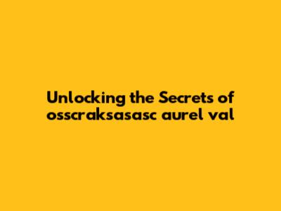 Exploring the Applications of osscraksasasc aurel val