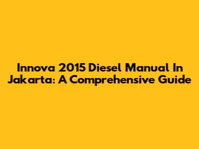 Innova 2015 Diesel Manual In Jakarta: A Comprehensive Guide