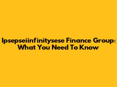 Ipsepseiinfinitysese Finance Group: What You Need To Know