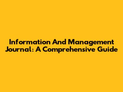 Information And Management Journal: A Comprehensive Guide