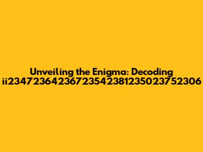 Hey guys, let's dive into something a little… different today. We're going to crack the code on ii23472364236723542381235023752306. Yeah, I know, it looks like a jumble of numbers, right? But trust me, there's a story behind every digit, every sequence. This isn't just about stringing numbers together; it's about understanding what this seemingly random collection represents and what it could mean. We will embark on a journey to unravel the hidden meanings and significance this number holds, breaking down its components and exploring its potential implications. Are you ready to dive deep and decipher this mystery together? Let's decode it.