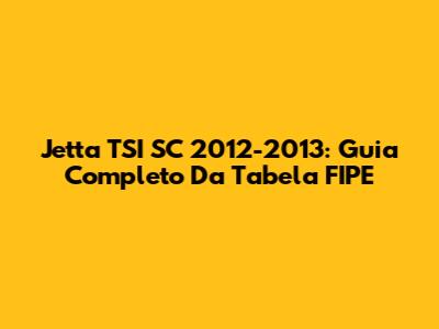 Jetta TSI SC 2012-2013: Guia Completo Da Tabela FIPE