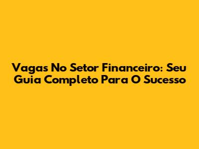 Vagas No Setor Financeiro: Seu Guia Completo Para O Sucesso