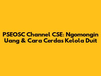 PSEOSC Channel CSE: Ngomongin Uang & Cara Cerdas Kelola Duit