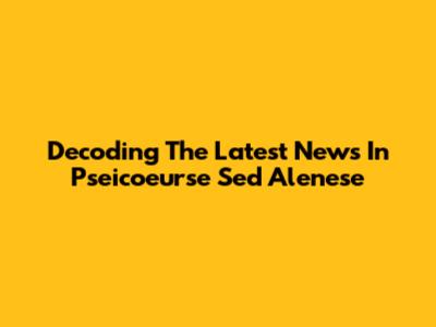 Decoding The Latest News In Pseicoeurse Sed Alenese