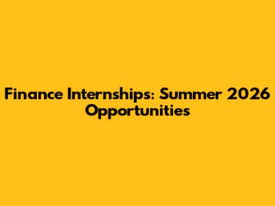 Finance Internships: Summer 2026 Opportunities